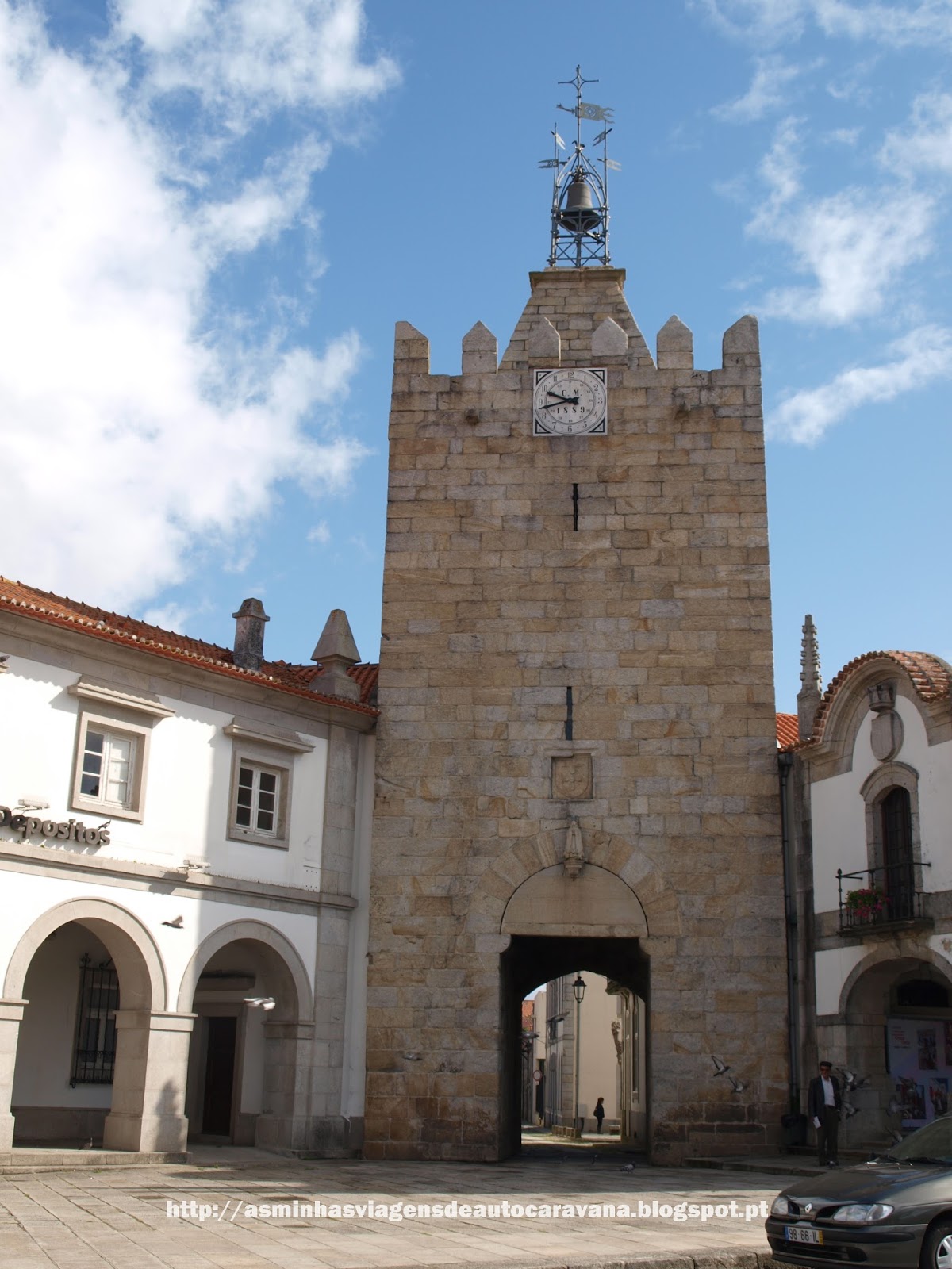 Nessa praça podemos ainda ver a Torre do Relógio que é um dos elementos centrais do brasão do município de Caminha.