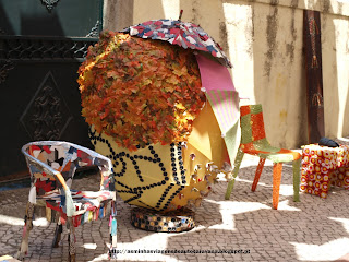pinturas que foram efectuadas em bancos de jardim, escadarias, colunas, etc.