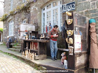 | Artesão trabalhando uma estátua em madeira em Locronan |