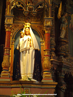 Capela podemos observar várias estátuas de pedra, incluindo os da "Virgem