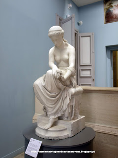 coluna do relógio uma estátua em bronze evocando uma deusa (mulher quase nua)